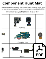 Come up with a list of components for students to find in their devices. Students can all use similar or different types of devices. It can be instructive to show the differences in the same component across many different devices. For example, students can compare the similarities and differences between the motherboards in cell phones, laptops, and game consoles. If you aren’t sure what components to look for, we have printable mats that have many common components in phones and laptops. Be sure to have students reassemble their devices when they are finished. It is just as important for students to learn that they can successfully take apart and reassemble devices as it is for them to learn about the components that make up the device.
